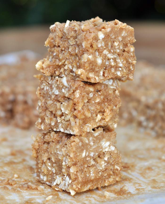 Caramel Coconut Ice Prep Time: 10 mins Set Time: 4-8 hrs Makes: 64 Cubes Ingredients: 1/3 Cup Coconut Butter - or you can make your own - recipe here :) 2 Cups Unsweetened Desiccated Coconut 2/3 Cup Powdered Coconut Sugar 2/3 Cup Maple Syrup Instructions: 1) Soften the coconut butter by heating in the microwave or place in the oven for a moment. 2) In a bowl combine all the ingredient together until thorough incorporated. 3) Spread into a 9” x 9” baking tray and place in the fridge to set. 4) Once firm use a warm knife to cut into squares.