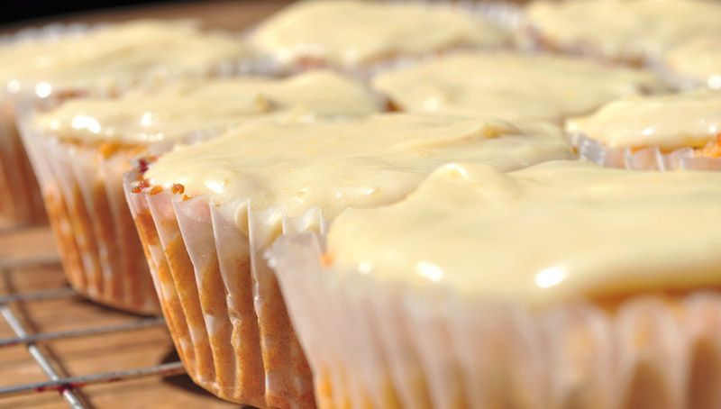 15) Leave to set for about 10 mins and then cover the top with the lemon curd frosting.